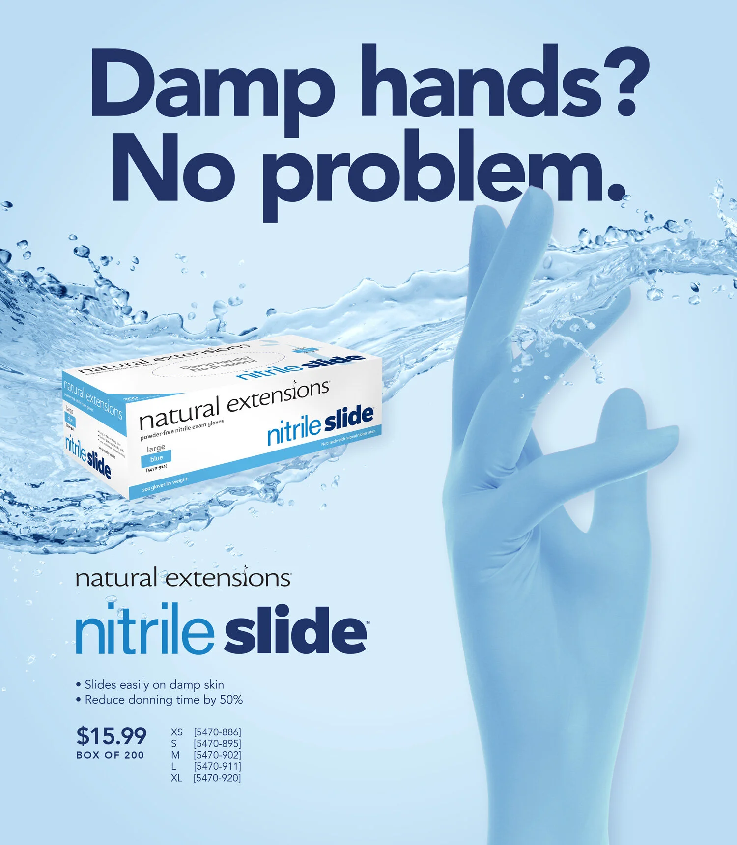 This ad was created as a part of a launch campaign for Natural Extensions Nitrile Slide gloves.